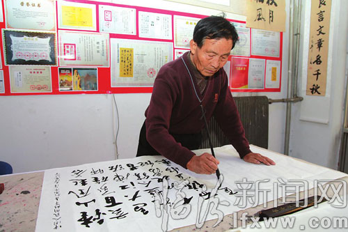带着收获与快乐,张克智把更多的精力和时间用在他的书法领域。“书法是我生活中的油和盐,少了它生活就少了许多味道。喜怒哀乐跃然纸上,身心舒畅。几个小时好似一瞬间,观赏着自己的作品,就像端详自己的孩子,心中自会流露出一种喜悦,一种幸福。”在几尺长的宣纸上,他随意挥洒着自己的感情和感悟,书法已经融入了他的生活。