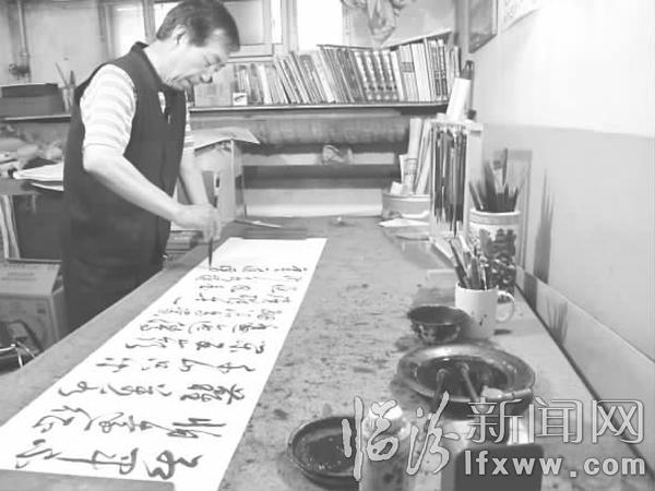 临汾新闻网讯 退休职工封爱军酷爱书法,他常常临摹名家字帖,醉心于浩瀚的书海,经过多年的潜心研习,他“悟”出了书法的诀窍,爱上了书法艺术。