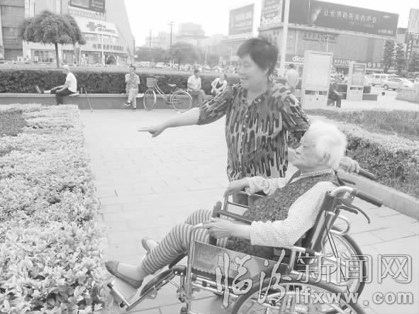 “每次和她聊天,就像吵架一样,我一定要扯着嗓子说。即使这样,大部分话她仍听不清楚,只是对我笑笑。”李爱凤说,为了让张金凤明白她的意思,她自创了不少手势,现在张金凤对她的这些手势也都心领神会,这已经成了两人交流的主要方式。张金凤喜欢热闹,只要天气好,李爱凤至少推着轮椅带她出去散步两次,由于平阳广场上有围栏,轮椅推不进去,每次到了平阳广场,李爱凤就得找人帮忙一起把张金凤抬进去。