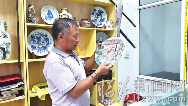 临汾新闻网讯 徐生财在尧庙古玩城的“风入松”古玩店开张了,这是他第二次开店了,第一次的“风入松”开在金殿镇上。7月19日,冒着炎炎烈日,我走进了他的“风入松”,就像走进阿里巴巴的宝库,看得眼花缭乱。古钱币、古字画、秦砖汉瓦,令人目不暇接。这些年为收藏,徐生财跑遍了全国各地大大小小的文物市场:北京潘家园、天津沈阳道、南京夫子庙、洛阳文波城……都留下了他的足迹,共收藏有考古价值文物千余件。2003年,徐生财就被中国收藏家协会纳为会员。