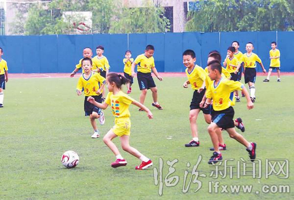临汾新闻网讯 8月15日早7时,在临汾五一路学校的操场上,一群身穿明黄色服装的足球少年在教练员的带领下学习足球技巧。这是教练员正在利用暑期免费教孩子们足球技巧。