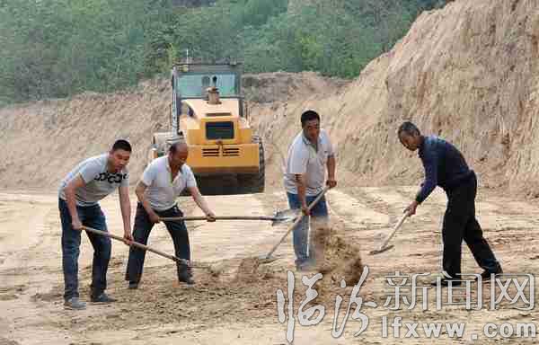 临汾新闻网讯 5月26日,襄汾县永固乡南姚村驻村第一书记李辉(左一)在和村民一起平整路面。第一书记李辉入村以来,通过调研摸底,该村通往汾河滩地及通往曲沃的乡村主道东大坡,由于年久失修,坡陡、路窄、弯道多,对村民出行及务农造成了较大影响,李辉通过发动村民公益捐款、多方协调筹措资金,维护修正东大坡工程顺利启动,将于6月中旬竣工,方便村民夏收作业。 记者 闫锐鹏 摄