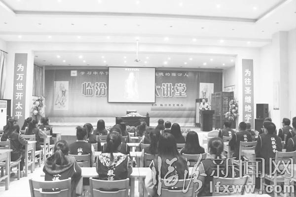 恰好有一个机会,吴荣丽的丈夫段小虎到北京参加了一期企业家论坛,期间,段小虎被那种国学氛围深深感动、震撼,回到临汾后也想搞一次没有商业利益的纯公益的国学论坛,让更多的临汾人参与进来,共同学习国学,弘扬传统文化。这个想法与吴荣丽不谋而合,很快,第一期论坛在临汾一家酒店举办。