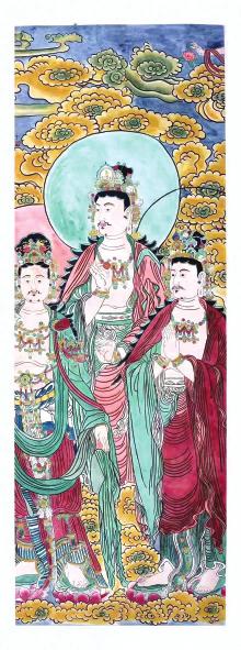 现藏于美国大都会博物馆的《药师佛会图》在梅莹的创作临摹下,恢复了本来面貌,让国人能够再睹“庐山真面目”。期间的辛苦自不用说,她不由感叹:如果不想坚持,任何理由都有可能放弃。放弃是容易的,但坚持到作品完成是极为不易的。当一个人想要实现自己的某一个梦想时,世界上任何东西都会为她让路,这个梦想本身就有无穷的能量。”梅莹的梦想源于对国家、对家乡的热爱,她的能量源于对艺术和文化事业的坚持。“浩如烟海的历史长河奔涌向前。大浪淘沙,能留下什么,我们还记得什么?”她掷地有声地说,壁画不仅是绘画作品,还是社会写照,它反映了其创作时代的历史背景或社会背景。