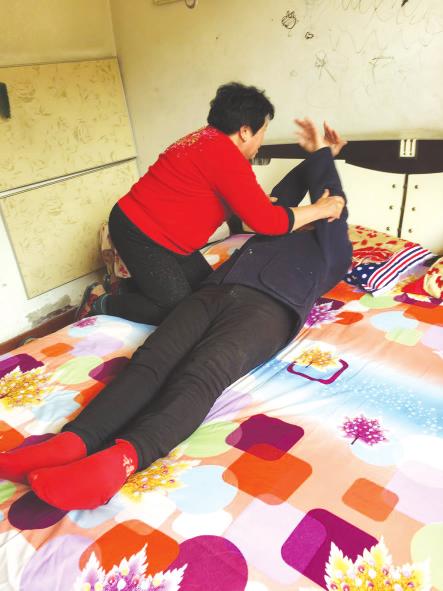 核心提示: 中午,吃过饭,郭翠英按往常惯例拿尿壶给丈夫刘福祥接了尿,用轮椅将他推进卧室。郭翠英站在床边使尽全身力气将刘福祥抱着放在床上,再将他放平,然后开始给丈夫做四肢康复锻炼。之后,刘福祥摆好侧躺的姿势,郭翠英询问几遍问其是否舒服,然后给他盖好被子,刘福祥就这样午睡了。