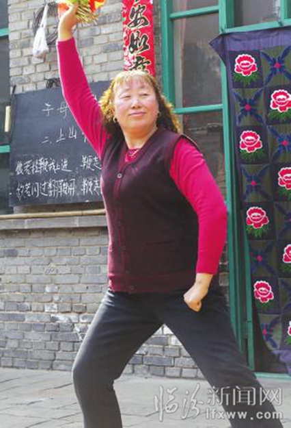 进入小院,首先映入眼帘的是各种武术用具及健身器材。令人难以想象的是,它们的主人竟是55岁的家庭主妇梁元宝。她不爱红装爱武装,一心研习洪洞通背拳,一练便是40余年。