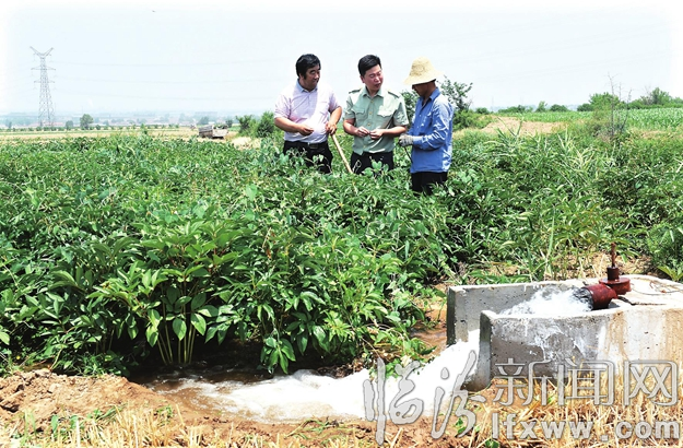 在农田里,驻村“第一书记“黄睿正在与村民师海飞探讨种植中药芍药的前景与产业规划。42岁的村民师海飞种植中药芍药6亩,今年已经是种植的第三年了,他指着不远处的水渠口高兴地说:“因为缺水,以前咱只敢种小麦,现在有了水渠,我也种植了芍药,浇水灌溉方便多了,以前种一亩小麦能挣800元,现在种一亩芍药能挣5000元,水利条件太重要了!”