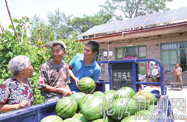 贫困户卫丹敏在宋海龙的多方协调下,依靠金融扶贫贷款建屋顶光伏,发展土鸡养殖。正值西瓜销售旺季,他入户了解西瓜销售情况,并提出切实可行的建议。