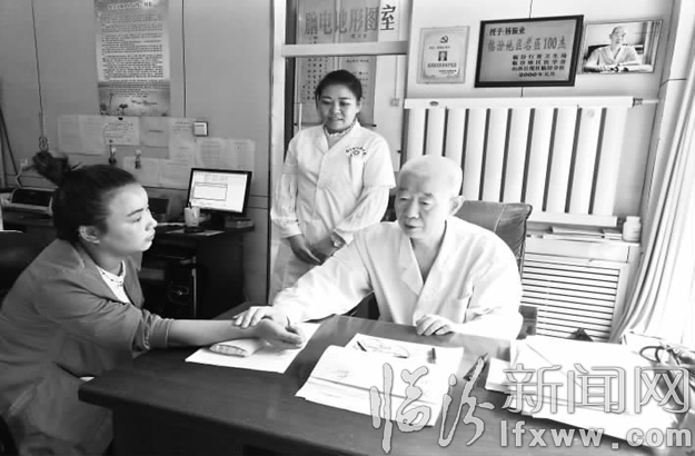 临汾新闻网讯 9月11日,临汾市心脑医院院长杨振业正在为患者把脉。杨振业于1966年跟随父亲杨万新从事临床工作,1987年创办临汾市心脑医院(原临汾地区心脑血管病专科医院),多年来,杨振业在临床技术上博学精思,与时俱进,敢于创新,他提出的“溶解血栓、疏通血管”荣获省级科技进步奖,主编出版了《脑卒中的诊断与治疗》《中医疑难病例分析》专著,受到社会各界和广大患者一致好评。