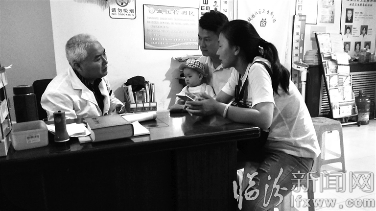 西赵村的一对小夫妻抱着宝宝前来看病,妻子说,孩子已经7天没有大便了。张延庆仔细为孩子听诊后开始给孩子做推拿,完毕后叮嘱小夫妇,回去给孩子用绿色蔬菜调理饮食就行,不用再服药了。一听说不用吃药,刚会说话的小家伙乐了,冲着张延庆一个劲地叫“爷爷”,把服务站的护士全逗乐了。