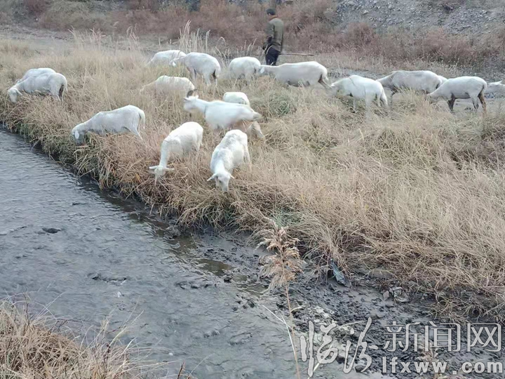 临汾新闻网讯 北涧河水,在晨光里流淌。一群羊儿在河边吃草,河水向下流,羊群逆水上,边吃草,边喝水,悠悠地向上游移动。在牧羊犬的追逐下,在牧羊人的驱赶下。