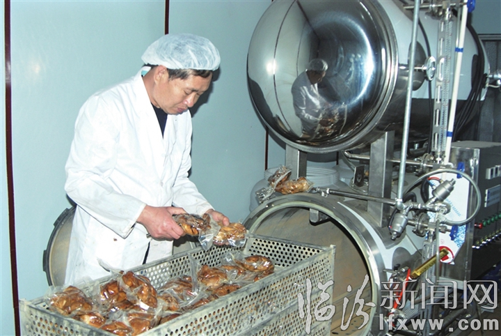 走进烧鸡生产车间,首先要经过更衣室、洗漱台等一系列消毒防菌环节。干净整洁的作业车间合理分布,煮、烧、装等分隔作业,现代化生产车间的高效、卫生、环保等优势凸显。苏全闰满怀感恩:“从乡镇到县里,再到市里都给予了许多帮助,标准化生产车间的设计都是由我市有关部门免费设计的。”