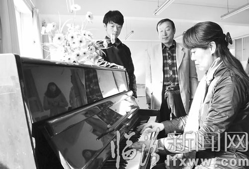 冬日的临汾,阳光从一扇窗户照进房间内,将温暖投射到一架黑色钢琴上,在静谧的房间里,悠扬、悦耳的音乐回荡期间。钢琴旁,一位中年女士在弹奏着钢琴,手指在黑白琴键间上下翻飞,在她的身旁,一位中年男子手拿几张乐谱打着拍子,一旁的年轻男生深情地唱着歌。