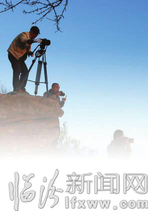 “因为生在这里,所以喜欢。”其实所有人都有爱家乡的情结,总觉得自己的家乡什么都是美的。壶口岸边有一群汉子,基于一种原始的、本能的、发自内心的爱,特别喜欢家乡的人祖山、管头山,几年来,只要天气好,他们就有进山的欲望,就想用相机记录大山里所有的美丽,为此,专门成立了“壶口潮摄影联盟”。