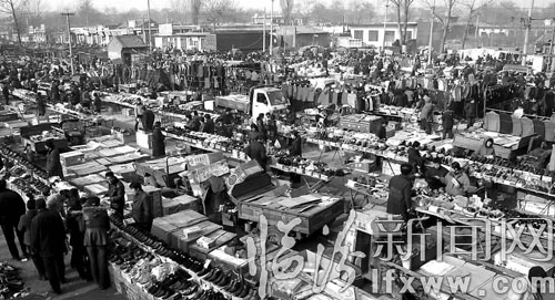 “十多年前,一进入腊月,农村的集市就格外热闹。卖菜、卖肉、卖服装的最多,但生意最好的应该是小吃摊,每家都坐得满满的。”张旦坐在电脑旁,将刘村集市的照片一一调取,每到赶集的那一天,各色商贩早早地赶到当年的刘村广场,将货物搁在面前一字排开。很多商贩都是就地取材,比如卖肉的找个铁丝把生肉挂在树上,卖饭的随便找一些砖块,垒起来当灶台用。”