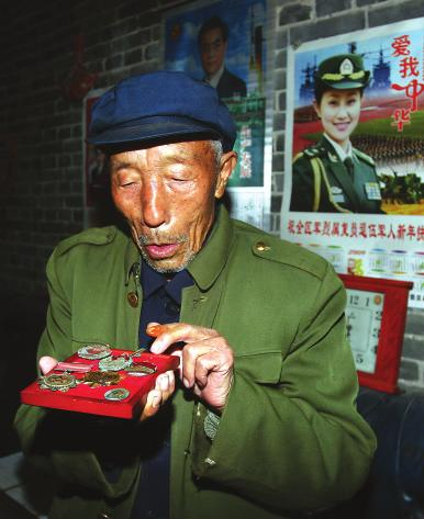 眼前一座四孔窑洞的农家院,进门,墙上挂着靳思杰当兵时的留念,各种纪念章老人珍藏至今,,次整理,都会勾起老人的回忆。