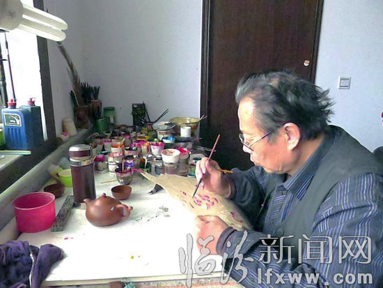 今年65岁的李世伟,25岁考入孝义皮影木偶剧团。从此,他和皮影结下了不解之缘。经过多年的不懈努力,在2005年,李世伟创作的皮腔纸窗影戏人物,荣获首届唐山国际皮影艺术节雕刻展览一等奖,成为国家非物质文化遗产孝义皮影传承人。办公桌前,他眉头紧蹙,小心翼翼地为关公图上色。“每天的大部分时间都在这度过,坐的时间一久,腰就开始疼。这不,为了缓解工作压力,特意买了一台音响来听歌,调节一下气氛。”