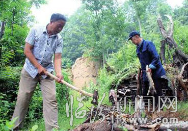 冯元堂老人今年80岁,解放前(1937年)跟随父母从河北涉县逃荒到下宝丰村,年轻时由于家里穷,错过了娶妻的机会,40多岁时,有过一段短暂的婚姻,但没有留下一男半女,后来就一直独居在这深山中。前几年,老人身体还不错,在山上种点蔬菜,养了十几窝土蜂,秋天采点核桃出售,偶尔下山走走,买生活必需品时,常到韩洪喜的诊所里坐坐,有个头疼脑热的也叫韩大夫为他诊治,就这样,一来二去,韩洪喜与老人建立了深厚的感情。