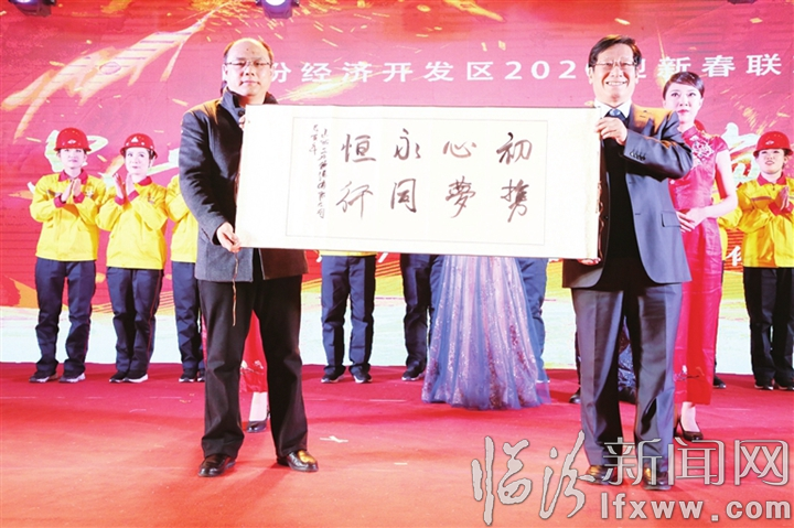 联欢会前,播放了展示临汾经济开发区2019年度发展成就短片。一年来,临汾经济开发区坚持转型为纲,项目为王,努力弥补工业短板,大力引进工业项目,招商引资工作取得新突破;坚持改革为要,创新为上,大力推进标准化厂房建设,不断优化营商环境,筑巢引凤,为未来发展奠定了坚实基础;坚持以人为本,担当作为,深化“三化三制”改革和辅岗人员改革,干部群众面貌焕然一新,凝聚力向心力不断增强;坚持以服务企业为中心,牢固树立“人人都是投资环境,事事都为招商引资”的服务理念,形成了尊重企业家、服务企业家的浓厚氛围;用进取诠释初心,用发展承载使命,用汗水浇灌收获,以实干笃定前行,交出了一份扎扎实实的成绩单。