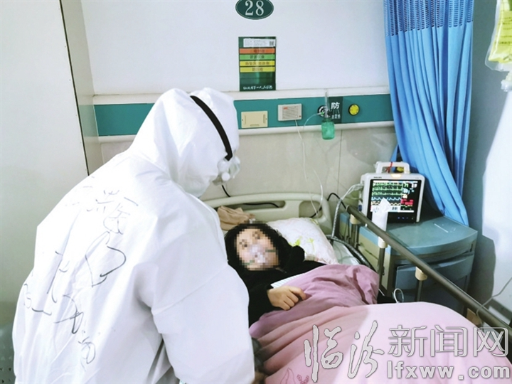 支援湖北的洪洞县人民医院ICU护师李华,正在武汉仙桃第一人民医院救治病人。
