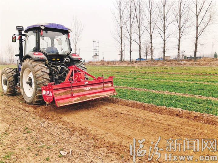 旋耕机在田间作业。 姚俊丽 摄