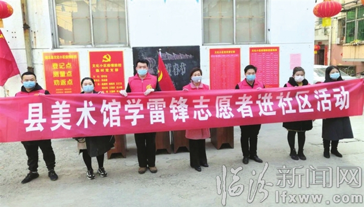3月5日是全国第57个“学雷锋纪念日”,也是山西省第一个志愿者日。曲沃县美术馆、曲沃县志愿者联合会共同组织志愿者服务队,在居民小区积极开展垃圾清扫和社区消毒等工作,并到餐饮场所进行疫情防控宣传。 柴萌 摄