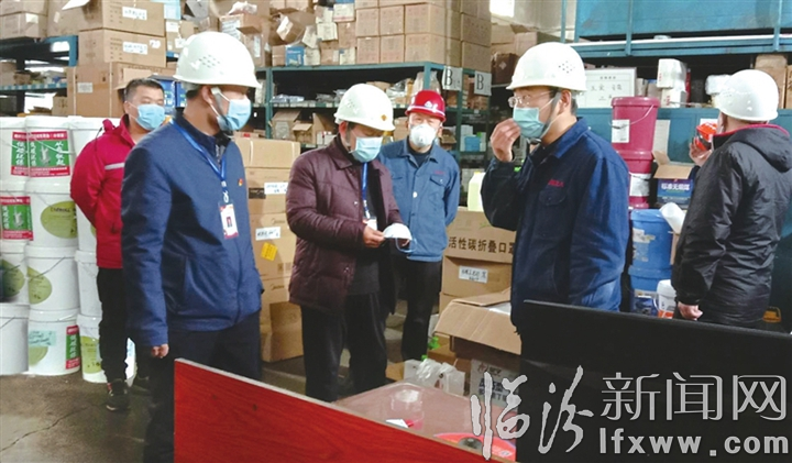 第十帮扶组实地查看光大公司防疫物资储备情况。