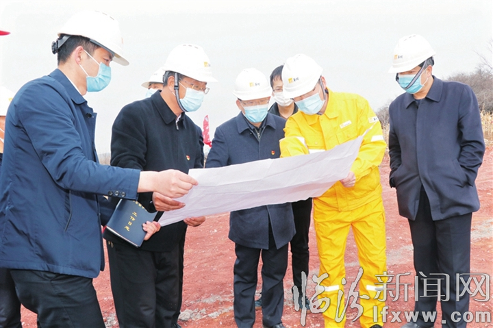 县委书记乔飞鸿调研华润新能源四十里岭二期风电项目。