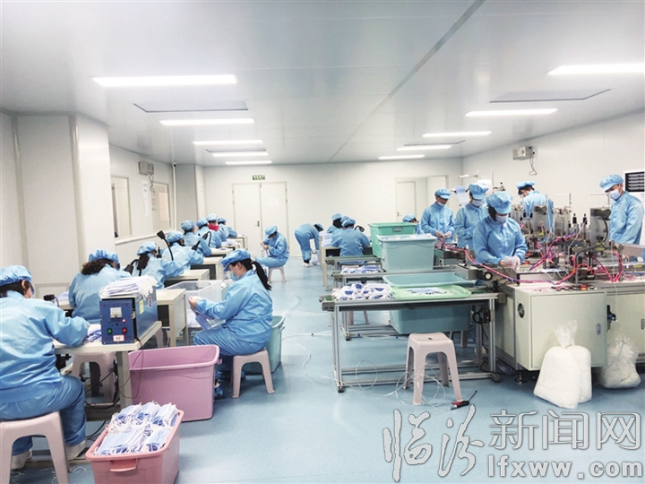 山西沃心医疗生物科技有限公司日产20万只口罩无菌生产车间一角