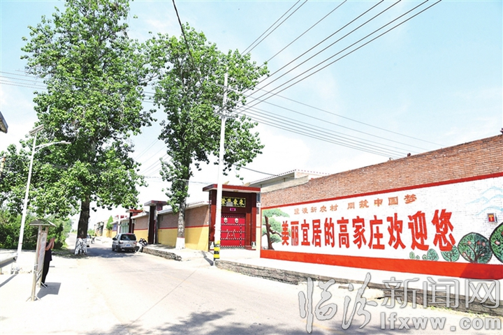 六月,掩映在金色的麦浪里,襄汾县汾城镇高家庄村口墙壁上,“建设新农村,同筑中国梦,美丽宜居高家庄欢迎您”彩绘宣传画分外醒目。