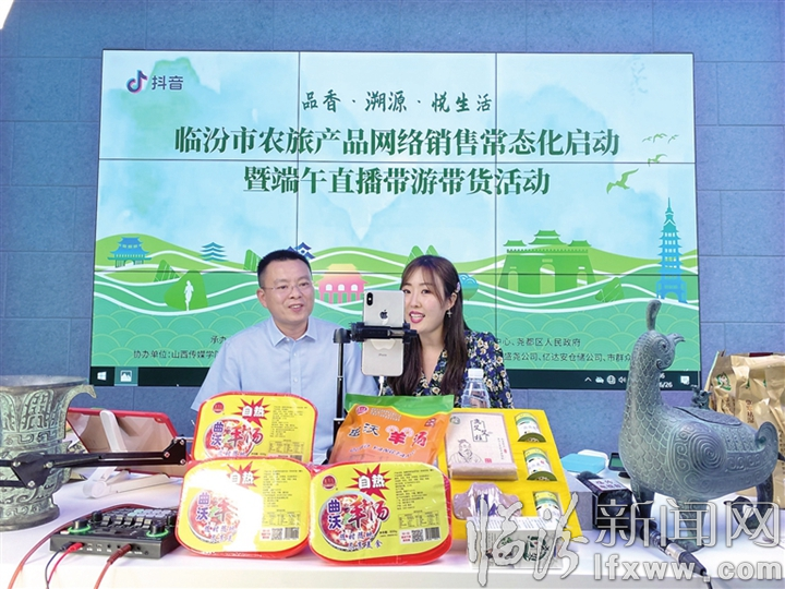 连日来,领导干部化身网红主播,走进直播间带货,受到广大群众一致点赞。领导干部们纷纷使出浑身解数,想方设法强力推介地方农业特产和文旅产品,线上叫卖、线下叫好,网络销售常态化成为全县农旅产品走向市场的重要手段,也成为推动全县高质量发展的新引擎。图为曲沃县委副书记、县长吴滨,县委常委、常务副县长孙惠生,副县长魏波、崔永慧在直播间带游带货时的情景。陈一铭 摄