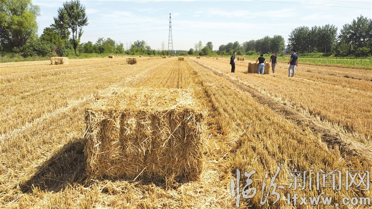 夏收季节,在侯马市大南庄村的农田里,机车轰鸣,村民驾驶收割机、打包机、搂草机、抓车、三轮车轮番上阵,一派火热繁忙的景象。收割完后,一捆捆整理好的秸秆,整齐地堆放在田地里等待运走。此时的农田已经可以直接复播农作物了。