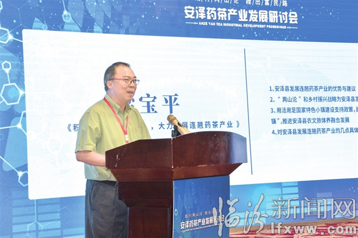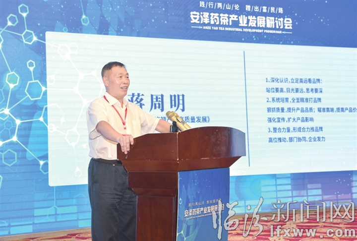 在当天下午举行的药茶产业发展研讨会上,安泽县委副书记、县长赵晨伟向与会者介绍了安泽药茶的现状及发展思路。赵晨伟表示,人夸安泽半山半水半江南,绿水青山是安泽的最大优势,药茶产业是群众增收致富的新希望,我们期待借助研讨会的平台和各位专家学者的学术研究成果,从专业化、科学化的角度为安泽把脉支招,推动安泽药茶向精细化、产业化、标准化方向发展。