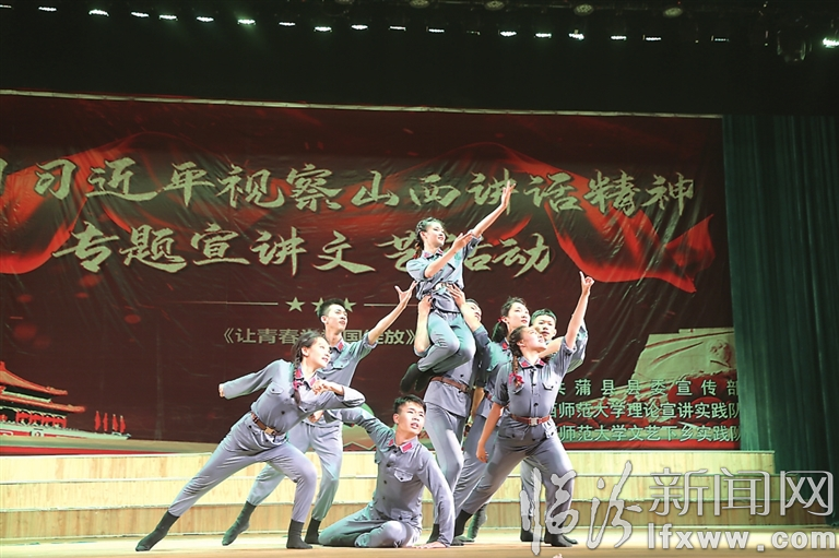 日前,山西师范大学理论宣讲文艺实践团走进蒲县,围绕贯彻落实习近平总书记视察山西重要讲话重要指示,以“让青春为祖国绽放”主题,采用理论宣讲与文艺节目相融合的方式,带给大家一场视听盛宴。冯挺 摄