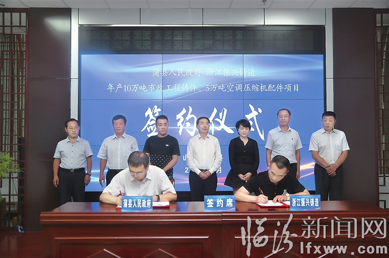 7月20日,蒲县与浙江振兴制造有限公司举行年产10万吨市政工程铸件、5万吨空调压缩机配件项目签约仪式。此次签约的项目总投资约4.3亿元。 冯挺 摄