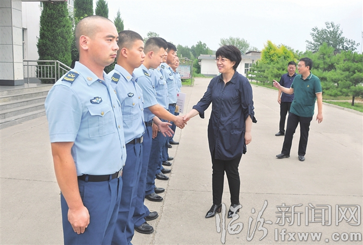 每到一处,李青雁一行都详细询问官兵们的生活和日常训练情况,与官兵们一一握手,亲切交谈,向他们致以节日问候和诚挚祝福,并送上慰问金。