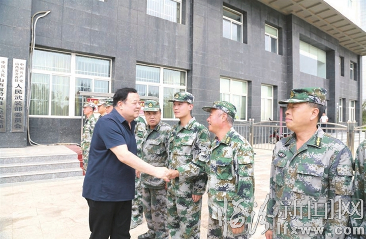 任天顺一行首先来到县人武部,向全体官兵致以节日的祝福和崇高的敬意,对他们长期以来为维护和促进全县经济社会和谐稳定发展,尤其是在拥政爱民、军民共建等方面所做的工作表示感谢,希望全体官兵一如既往地支持汾西经济社会发展,再接再厉,再立新功。要大力弘扬听党指挥、服务人民、英勇善战的优良传统,真正做到招之能来、来之能战、战之必胜。