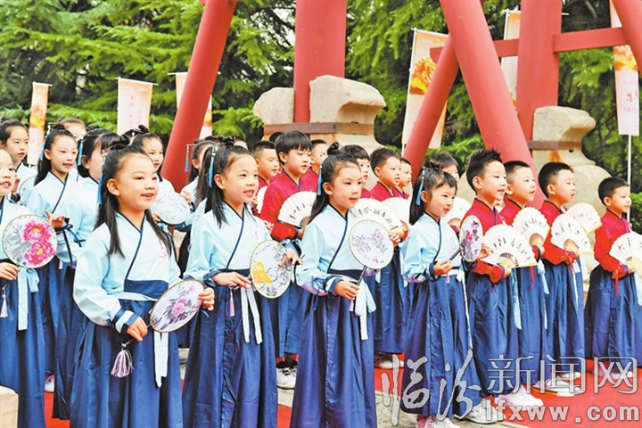 上午8时,参会领导、嘉宾和媒体记者陆续入场,在身着汉服的导游引导下,走进大门,沿着“龙凤大道”,穿过仪门,听取尧帝时期生产生活工具石雕讲解,领略尧帝开创文明建立最早“中国”的古老历史文化。五凤楼前围棋广场,40名身穿汉服的小朋友演唱尧帝时期的歌谣《击壤歌》,以歌迎宾,以歌传礼,彰显古风今韵。五凤楼前,水袖、帽翅、耍帕、顶碗等戏曲绝活频频亮相;生、旦、净、末、丑戏曲角色精彩展演;童声朗诵《二十四节气歌》,集中展现尧都深厚戏曲文化底蕴,讴歌了新时代尧舜子孙盛世豪情。