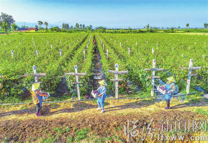 连日来,葡萄进入成熟期。位于翼城县南梁镇东尹村的山西晟田农业发展有限公司,工作人员穿梭于地垄行间,进行采摘作业。该公司葡萄种植基地占地300余亩,生产的“翔山”葡萄被中国绿色食品发展中心确定为绿色产品,有夏黑、黑多拉等多个品种,从种到收实现了绿色标准化生产。