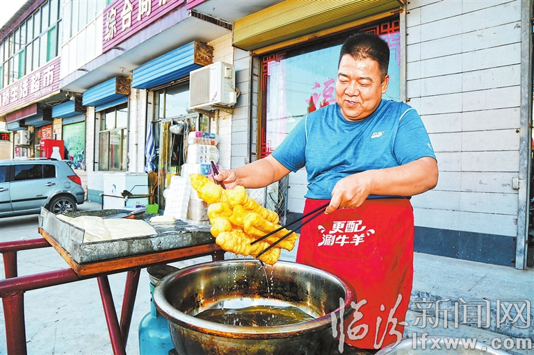 店里不忙的时候,吕军会去厨师学校教大家炸油条。一天卖掉将近35公斤面,他炸油条的诀窍可不单纯靠厨艺,“好食材才能做出好味道,你说是不是这个理儿?”吕军告诉记者,他的油条是用鸡蛋和油和面的,面粉也不是普通面粉,而是五星高筋粉,“这样做成本是高了点,但炸出来的油条口感好,大家都喜欢。”