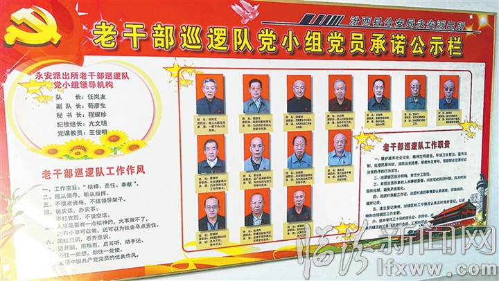 为了有效震慑犯罪分子、第一时间化解基层矛盾,永安派出所牵头成立了由14名退休老干部组成的“老干部巡逻队”,老干部们持证上岗、分片巡逻,用21年的无私奉献守护着汾西县的平安。他们火眼金睛、嫉恶如仇,甘当“报警器”,防止犯罪、防患风险于未然;他们是“救火员”,危难之际总会挺身而出;他们是“和事佬”,总能将一触即发的矛盾化解于无形……在他们的影响带动下,更多的志愿者和群众行动了起来,携手用实际行动成为平安汾西的守护者。
