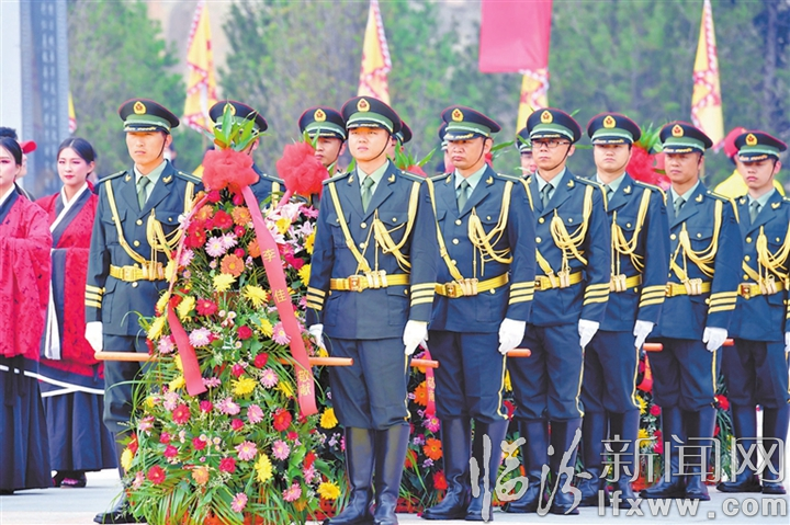 北国之秋,山河斑斓;涝水之滨,嘉宾云集;尧天舜日,国泰民安。上午9时50分,全体肃立,开启圣门。击鼓4通,鸣钟9响,来宾代表敬献花篮。此时此刻钟鼓齐鸣,形神俱肃,花之锦绣,献与殿堂,这其中的历史传承与凝聚的文化力量,比花篮更加芳香。
