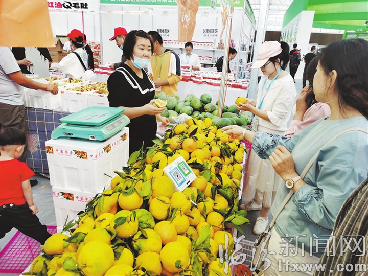 参展商热情推荐大家品尝新品种水果。记者 刘玉林 摄