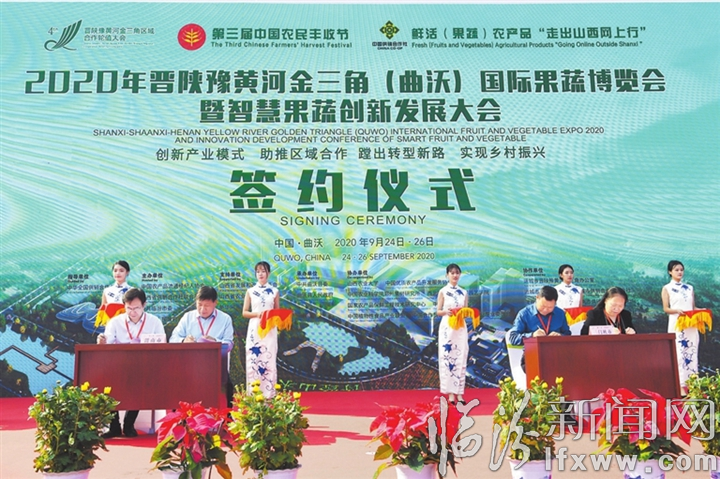 9月24日,2020年晋陕豫黄河金三角(曲沃)国际果蔬博览会暨智慧果蔬创新发展大会开幕,大会以“创新产业模式、助推区域合作、蹚出转型新路、实现乡村振兴”为主题,共分为室内展区和室外展区,设置展区6万余平方米、展位近500个,开展技术交流、产品展示、招商推介等一系列活动,来自“一带一路”沿线的20个国家和地区,27个省和晋陕豫黄河金三角区域四市47个县(市、区)的550多家参展商、采购商、投资商参加,全面汇集、展示、交流、推广国内外果蔬产业领域的新基建、新技术、新材料、新装备、新产品、新业态,推进农业科技创新和成果转化。整体展会主题突出、特色鲜明,嘉宾云集、盛况空前。