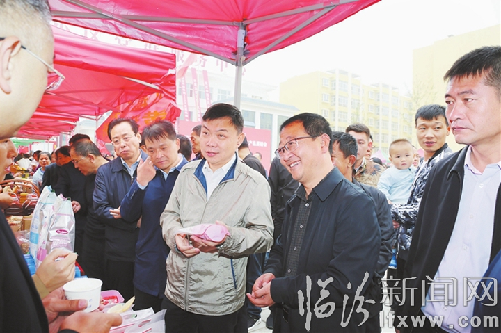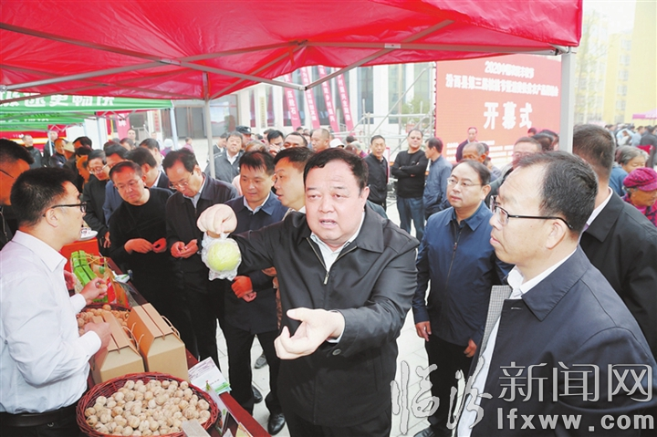 县委副书记、县长张安文在展销会现场了解产品销路情况