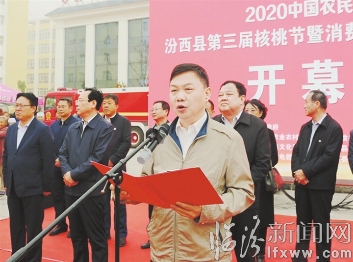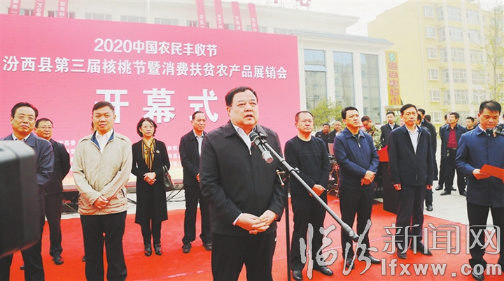 9月23日上午9∶10,在热闹非凡的汾西县府底小区广场上,市人大常委会副主任、汾西县委书记任天顺宣布:2020中国农民丰收节·汾西县第三届核桃节暨消费扶贫农产品展销会开幕。县委副书记、县长张安文致辞。这场汾西人民和各地客商期盼已久的盛会正式拉开大幕。汾西县四套班子领导、县直各单位负责人、各乡镇区党委书记和乡镇长、各企业负责人、合作社负责人、客商代表等200余人参加。