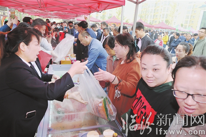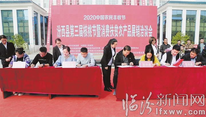 “晋西”核桃王、“龙荞”保健品、“长晟”肉鸡、“姑射山”土鸡蛋、“溢泉山”玉露香梨、“麒麟”小米、“康瑞莱”黄粉虫等特色农产品吸引了各地客商,他们纷纷签订订单或合作意向订单。当天,共销售农副产品302.4万元,其中:线上销售125万元,活动现场销售83.9万元,各单位“五进十销”销售93.5万元。各企业签订意向订单9690.5万元,签订合同订单749万元,意向订单、合同订单总金额高达1.04395亿元。