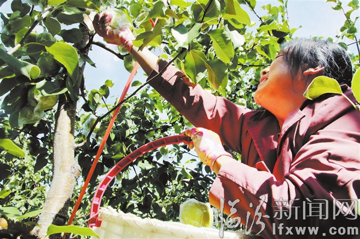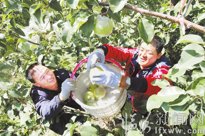 村民刘万长高兴地说:“我家去年的玉露香梨甜度高、色度红、果型好,不瞒您说,我是数着颗卖的,价格嘛,当然是全县最高的。” (隰宣)
