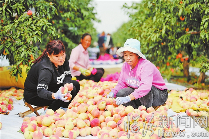 18年过去了,李秀峰的桃园从当初的60亩发展到今天的600亩,合作社115人,其中贫困户65人。“今年桃园预计产量1500万公斤,挺可观的。这两天大家都在桃园里摘桃子,干得热火朝天,收成好收入就高,大家伙心里也高兴!”李秀峰兴奋地告诉记者,“我们的桃子硬度大、甜度大,又香又脆,而且耐运输、耐储存,之前还卖到了缅甸,迈出国门啦!”