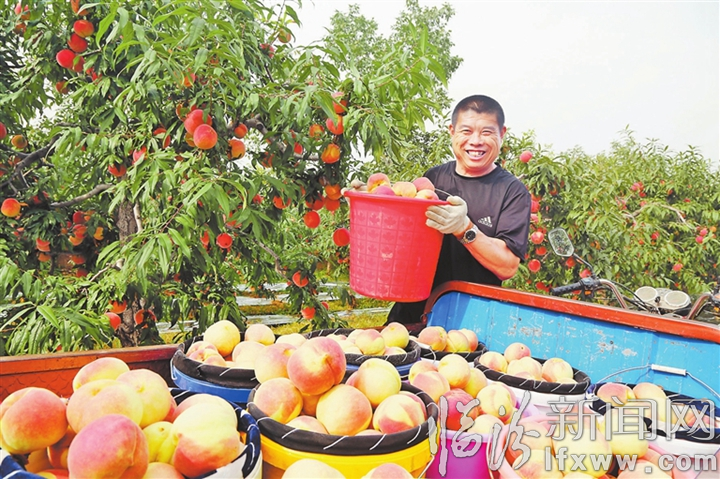 桃农赵晋把一筐筐鲜美的桃子装车外运